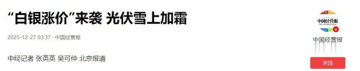 中国经营报:“白银涨价”来袭 光伏雪上加霜